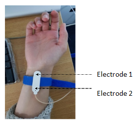 This picture shows the position of the two electrodes used to deliver the stimulation.